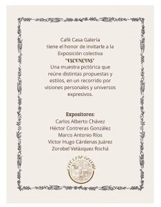 Así lo informo el Profesor Carlos Alberto Chávez Sanabria, quién mencionó, «es importante la realización de ésta Exposición Colectiva «Escencias» a la que me invitaron a participar ya que se va a realizar en el Café Casa Galería, un espacio abierto al arte».