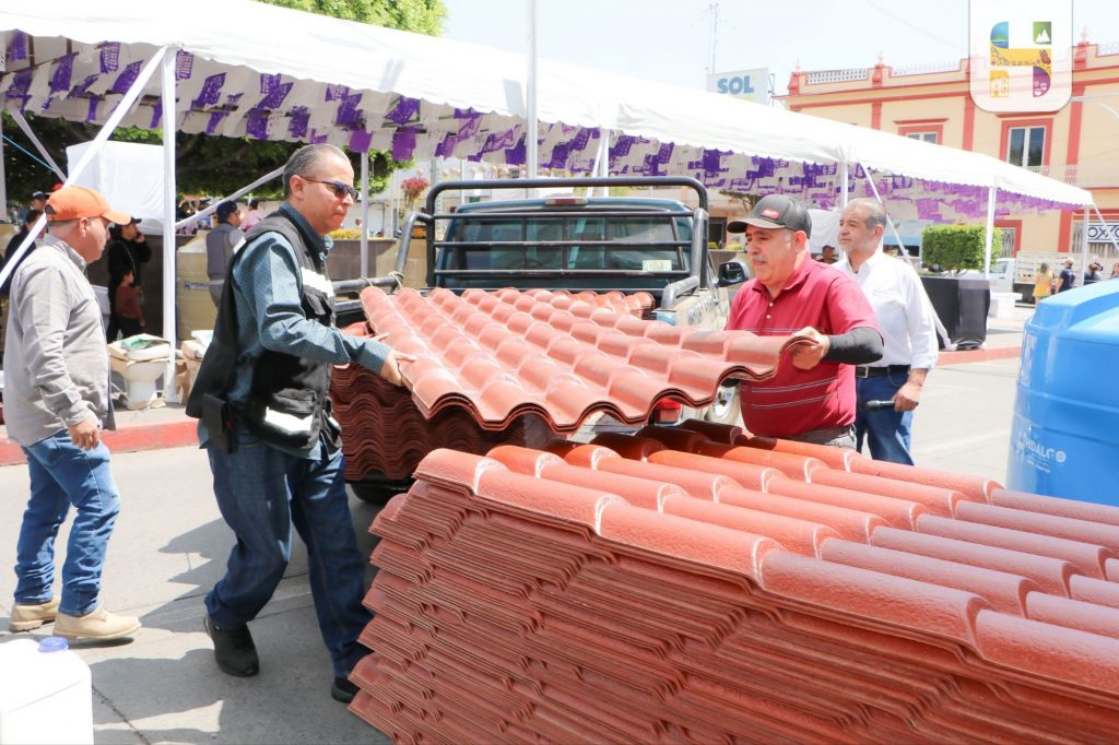 Los apoyos entregados incluyeron 14 calentadores solares, 25 tinacos, 157 plasti-tejas, 18 juegos de baños, 2 regaderas, 2 prensas, una mezcladora, 19 paquetes combinados de tinaco, calentador solar y bomba, una prensa para quesadillas, una lona, 4 productos de acero y una bomba de agua de ½ hp.
