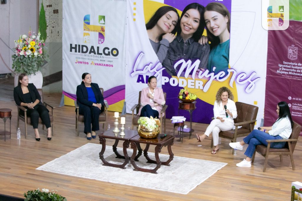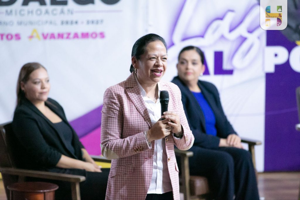 Ciudad Hidalgo, Michoacán., a 24 de abril de 2026.- La presidenta Municipal de Hidalgo, Jeovana Alcántar acompañada de la Diputada Local Teresita Herrera Maldonado y la presidenta del Irimbo, Susy Ruiz, participó como panelista en el Foro Regional “Mujeres Al Poder” espacio de diálogo, participación y fortalecimiento para las mujeres líderes de nuestra región que se llevó a cabo en el Teatro del Pueblo, donde asistieron presidentas municipales, sindicas, regidoras, directoras y mujeres comprometidas con el desarrollo de sus comunidades.