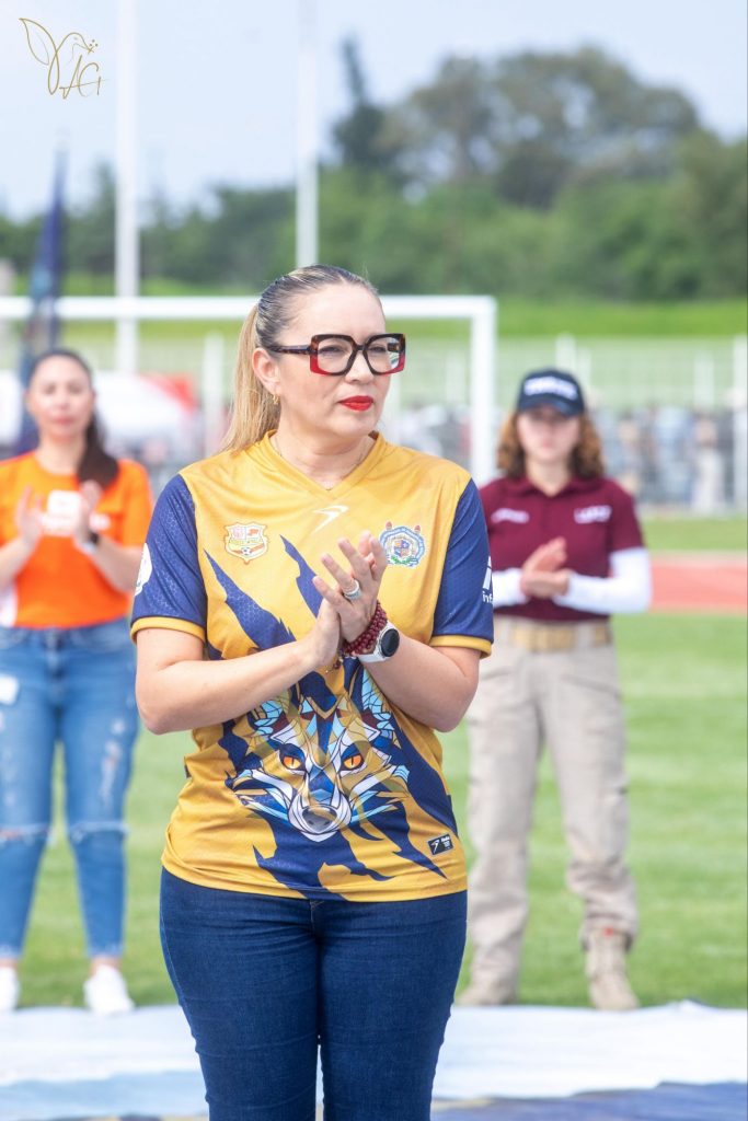 La rectora Yarabí Ávila González fue la encargada de inaugurar las acciones con la tradicional patada inicial del encuentro que se desarrolló en el Estadio Universitario en un ambiente de gran ánimo entre la afición que apoyó a las alumnas nicolaitas.