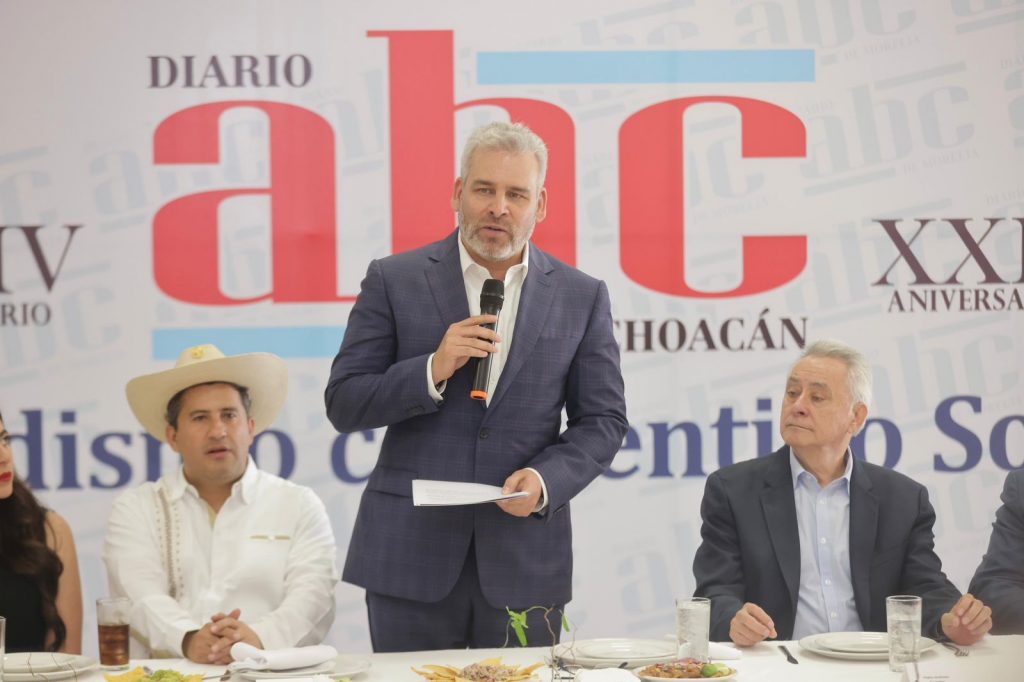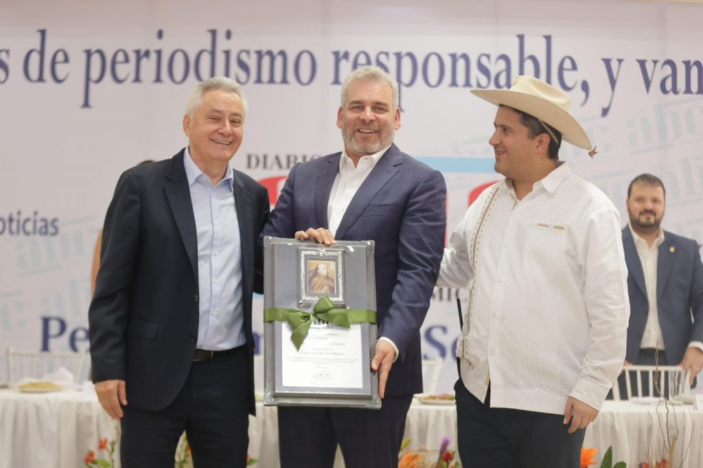 Distingue periódico ABC de Michoacán a Bedolla con reconocimiento Fray Juan de San Miguel.