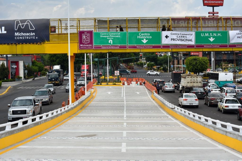 Con una inversión multianual de 380 millones de pesos, la construcción del distribuidor vial registra un avance general del 89 por ciento. Actualmente, la SCOP trabaja en el paso a desnivel que conectará el libramiento sur con la salida hacia Pátzcuaro.