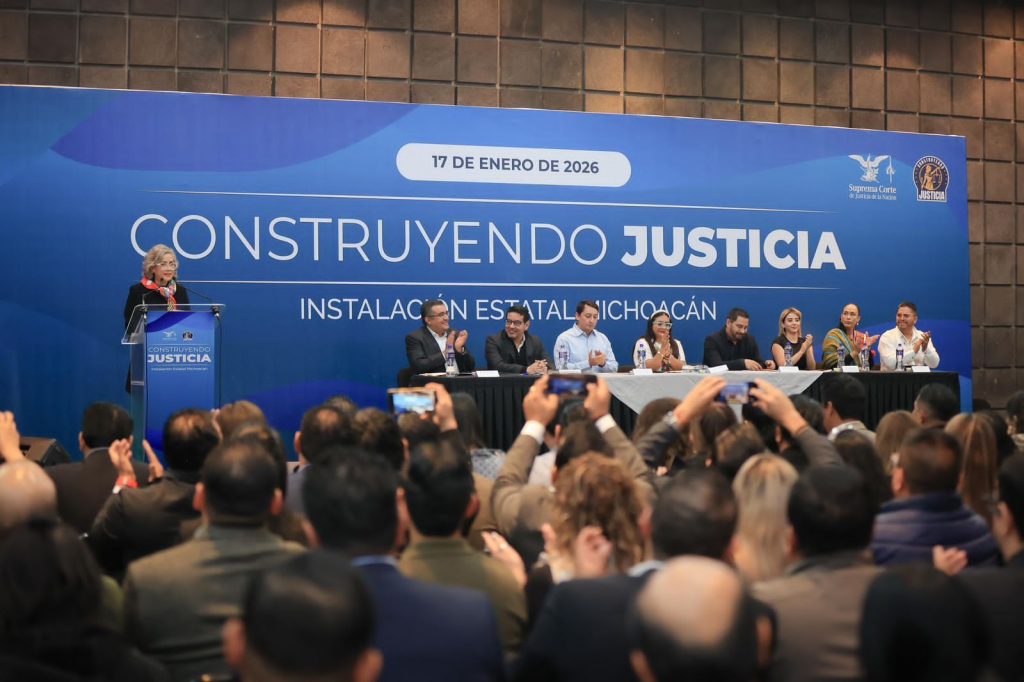 Morelia, Michoacán, 18 de enero de 2026.- Con la participación de más de 100 magistradas, magistrados, juezas y jueces federales y locales, se llevó a cabo en Michoacán la instalación de la asociación civil Construyendo Justicia, un espacio ciudadano que busca transformar la impartición de justicia a partir del diálogo, la participación social y la apertura del Poder Judicial.