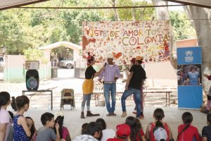 Malabares, juegos con mascadas, interacción, bailes, recorrido por el lugar de la activación fueron los ejercicios realizados por parte de Payasos sin Fronteras; el personal de la Agencia de la ONU para Refugiados (ACNUR) y de la Secretaría del Migrante (Semigrante) bailaron al compás de “Sopa de Caracol” y “Oye”.