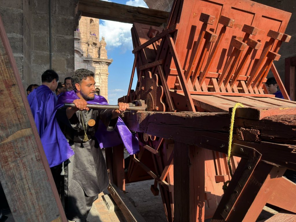 Este Jueves Santo se llevó a cabo la emblemática Procesión de la Anuencia, que partió del Templo del Prendimiento rumbo a la Catedral de Morelia, donde las campanas resonaron por última vez. Este acto precede a una de las manifestaciones de fe más imponentes de la temporada: la Procesión del Silencio.
