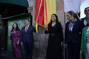 Morelia, Michoacán; 30 de abril de 2024.- Con el objetivo de dar a conocer las actividades artísticas, culturales y turísticas que se realizarán por el 483 Aniversario de la fundación de Morelia, el Ayuntamiento en conjunto con autoridades estatales y militares, así como ciudadanía en general, realizó el recorrido en Bando Solemne para develar el programa en los 8 estrados municipales del centro histórico.