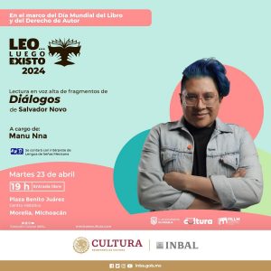 • 19:00 – Como cierre de la jornada, en colaboración con el Instituto Nacional de Bellas Artes y Literatura (INBAL), el reconocido artista y standupero mexicano Manu Nna realizará una lectura en voz alta de fragmentos de «Diálogos» de Salvador Novo, con la participación de una intérprete de Lengua de Señas Mexicana.