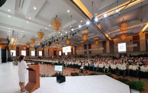 En su participación, la candidata de Morena, PT y PVEM aprovechó para agradecer a los representantes bancarios por organizar esta convención en Acapulco, para ayudar a este estado a continuar recuperándose después de las afectaciones que dejó el paso del huracán OTIS.