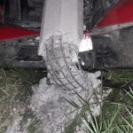 El vehículo involucrado en el accidente es una camioneta de marca Ford, tipo Super duty, de color rojo, con placas del Estado de Michoacán. Según el relato del conductor, el accidente se produjo debido a una falla en el sistema de frenos, lo que provocó que la camioneta chocara contra un poste de luz y otro de cables de internet.