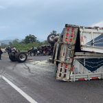 En el lugar, quedaron siniestrados un camión tipo Tortón aguacatero que terminó volcado, y su carga regada, un vehículo Aveo, color blanco; un taxi Chevrolet Aveo; color blanco y rosa, de la ciudad de México, una camioneta Jeep, de color rojo, camioneta Dakota, de color café, que fueron trasladados al corralón oficial.