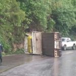 Zitácuaro, Michoacán., a 6 de julio de 2021.- Conductor pierde el control del tráiler que conducía sobre la carretera Zitácuaro – Aputzio, a la altura del lugar conocido como El Aguacate.