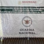 Morelia, Michoacán., a 28 de junio de 2021.- Personal de la Guardia Nacional (GN) en un operativo aseguró 291 casquillos de arma de fuego de grueso calibre, una empresa de paquetería.