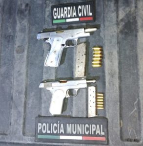 Tras lo anterior, a los pasajeros de ambas unidades les fueron localizadas dos pistolas, las cuales junto a los implicados y los vehículos fueron puestos a disposición de la autoridad correspondiente para determinar su situación jurídica.