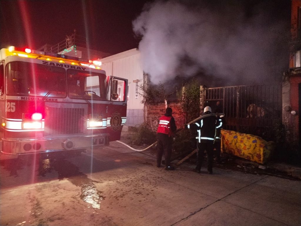 Zitácuaro, Michoacán; 1 de enero de 2026. — Durante la madrugada de este miércoles, elementos del Heroico Cuerpo de Bomberos de Zitácuaro atendieron un incendio registrado en una casa habitación ubicada sobre la Prolongación de Francisco Serrato, en la colonia 6 de Junio, como referencia a la altura del CBTIS 162.